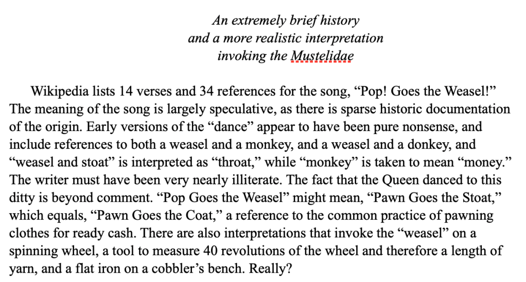 Pop Goes the Weasel Share this: Click to share on X (Opens in new window) X Click to share on Facebook (Opens in new window) Facebook Like Loading... Related Author: Samuel A. Johnson This blog is about hiking, thinking, and writing. View all posts by Samuel A. Johnson