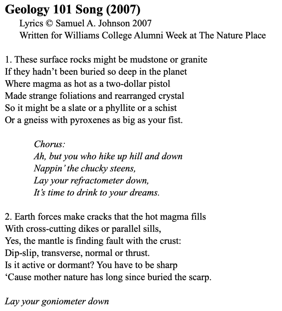 This song went through many forms, each a “new song” that Mark Evans had written. I eventually chose one of them, modified it to make it singable, and sang it from then on. But it’s been a lot of years. The lyrics follow the song.